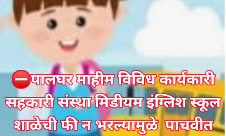 पालघर माहीम विविध शिक्षण संस्था मिडीयम इंग्लिश स्कूलच्या इयत्ता पाचवीत शिकणाऱ्या विद्यार्थिनीने शाळेची फी न भरल्यामुळे तिला शाळेत घेण्यास बंदी