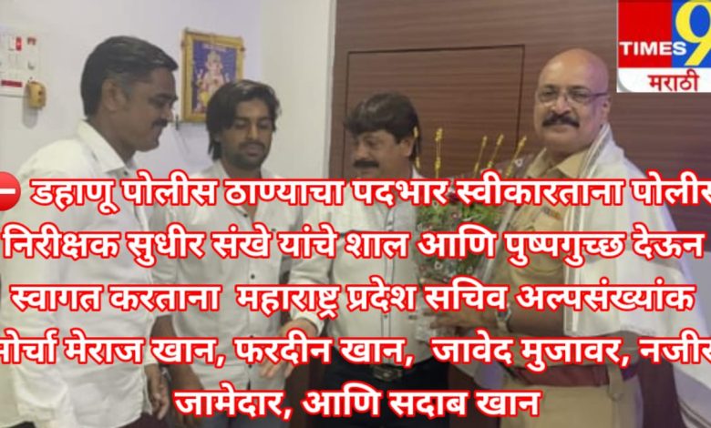 2023 रोजी ते जव्हार पोलीस ठाणे येथे कार्यरत असताना प्रशासकीय कारणामुळे त्यांची बदली 1 जुलै 2023 रोजी डहाणू पोलीस ठाणे येथे करण्यात आली असून त्यांनी 1जुलै 2023 रोजी डहाणू पोलीस ठाण्याचा पदभार स्वीकारला यावेळी पोलीस निरीक्षक सुधीर संखे यांचे शाल आणि पुष्पगुच्छ देऊन स्वागत करताना महाराष्ट्र प्रदेश सचिव अल्पसंख्यांक मोर्चा मेराज खान, फरदीन खान, जावेद मुजावर, नजीर जामेदार, सदाब खान, हे भाजप कार्यकर्ते उपस्थित होते.