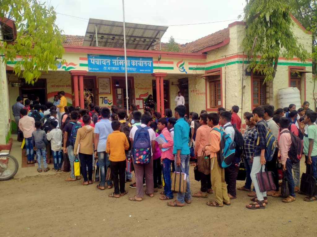 करमाळा तालुक्यातील जेऊर परिसरातील वांगी नंबर एक येथे गेल्या सहा महिन्यापासून जिल्हा परिषद शाळेत शिक्षक नसल्याने शालेय विद्यार्थ्यांचे मोठ्या प्रमाणात नुकसान होत असून सदर शाळेमध्ये त्वरित शिक्षकाची भरती करावी अशी मागणी आज चक्क जिल्हा परिषदेमधील विद्यार्थ्यांनी आज गटविकास अधिकारी कार्यालय येथे मोर्चा काढून व निवेदन देऊन आपला संताप व्यक्त केला आहे