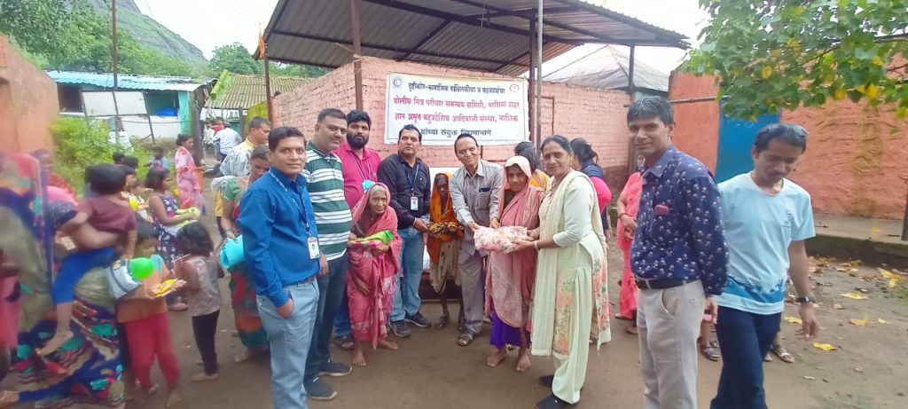 पोलीस मित्र परिवार समन्वय समिती नाशिक शहर आणि ज्ञात अमृत बहुउद्देशीय आदिवासी संस्था नाशिक यांच्या संयुक्त विद्यमानाने गरजूंना जीवनावश्यक साहित्य व वस्तूंचे वाटप