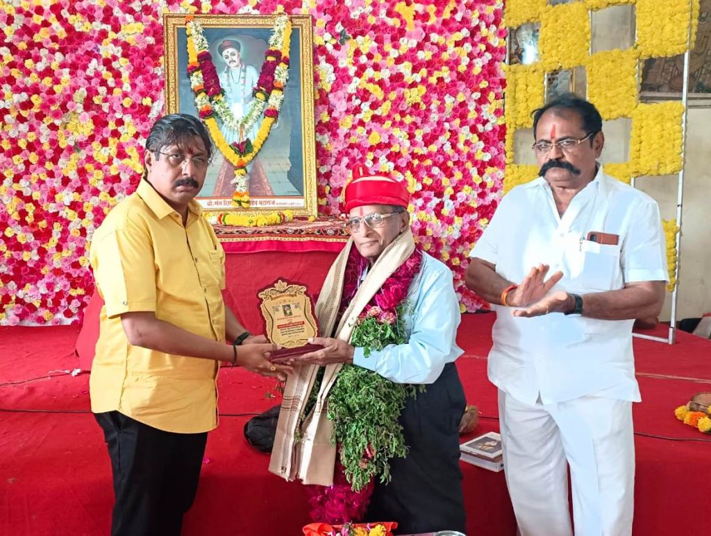 छत्रपती सेवा प्रतिष्ठान नागपुर-पुणे यांचावतीने नामदेव चरित्र, नामदेव गाथा याचे देशभरातील पारायण, किर्तन, प्रवचन माध्यमातून प्रसार व प्रचार यातील नामदेवगाथा व्रती निरुपणकार ह.भ.प.. प्रकाश निकते गुरुजी यांचे योगदान विचारात घेवून त्यांना “जिजामाता विद्वत गौरव पुरस्कार” ने नुकतेच सन्मातीत करण्यात आले त्याबद्दल त्यांचा व त्यांच्या सुविद्य पत्नी .प्रतिभाताई यांचा समस्त भावसार शिंपी समाजाच्यावतीने मा.धैर्यशिल मोहिते पाटील यांचे शुभहस्ते यथोचित सन्मान करण्यात आला.