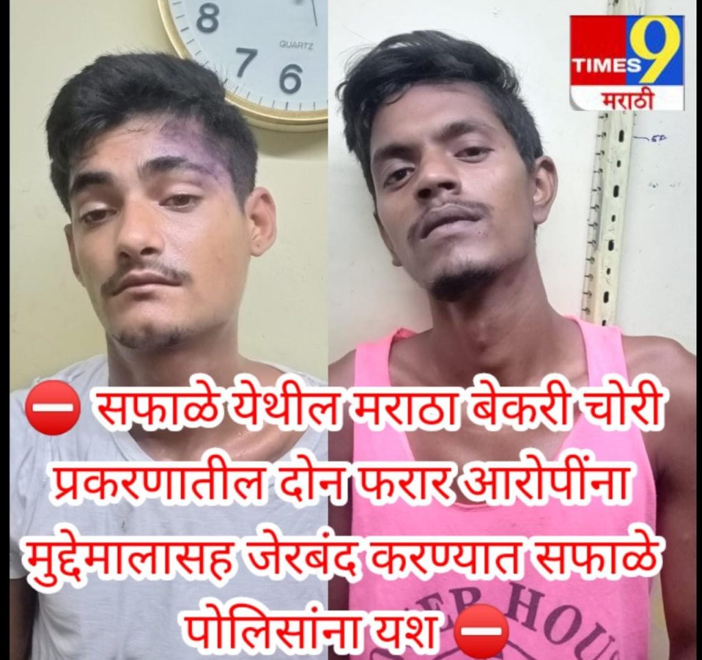 पालघर जिल्ह्यातील सफाळे पोलीस ठाणे हद्दीतील मराठा बेकरी मध्ये चोरी करून फरार झालेल्या दोन आरोपींना मुद्देमाला सह जेरबंद करण्यात सफाळे पोलिसांना यश आले आहे.