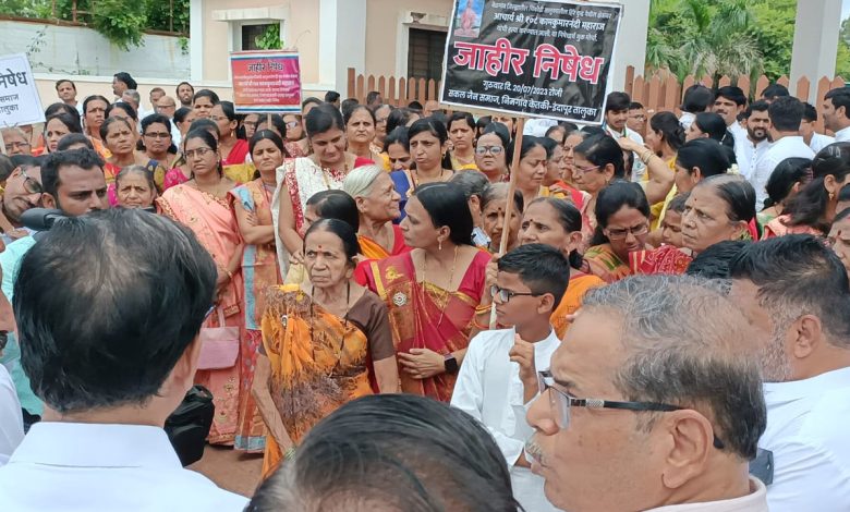 सकाळी दहा वाजता संपूर्ण तालुक्यातील सकल जैन श्रावक व श्राविका जुन्या तहसील कार्यालयाजवळ संभाजी चौकातील श्री १००८ पार्श्वनाथ दिगंबर जैन मंदिर येथे एकत्र जमले. तेथून शहर मुख्य बाजार पेठ, जुन्या पुणे सोलापूर राष्ट्रीय महामार्गावरुन प्रशासकीय भवनासमोर आल्यानंतर मोर्चाचे निषेधसभेत रुपांतर झाले. तेथे ज्येष्ठ पत्रकार डॉ. विकास शहा, श्री १००८ शांतीनाथ दिगंबर जैन मंदिर ट्रस्टचे अध्यक्ष डॉ. श्रेणिक शहा, भिग वण चे अध्यक्ष महेंद्र बोगावत, संजय रायसोनी, सारिका गांधी, अभय गांधी यांची भाषणे झाली. यावेळी भारतीय जैन संघटनेचे अध्यक्ष धरमचंद लोढा, जैन सोशल संघाचे अध्यक्ष नरेंद्र गांधी, नितीन शहा, शेखर दोशी,पारसमल बागरेचा, निलेश मोडासे, प्रकाश बलदोटा, महेंद्र गुंदेचा, जवाहर बोरा, डॉ.अनंग मेहता, संजय बोरा, निकिता दोभाडा, महावीर गांधी, हुकुमचंद बोरा, संदीप दोशी, वैभव दोशी, सचिन गांधी, अक्षय दोशी, पंकज दोशी, डॉ.अतुल कोठारी, संतोष व्होरा, विपुल व्होरा, धर्मेंद्र गांधी, स्वप्नील दोशी, अमोल डूडू, अजित दोशी, महावीर शहा यांच्यासह तालुक्यातील सर्वच भागामधील जैन बांधव व भगिनी मोर्चामध्ये सहभागी झाले होते.