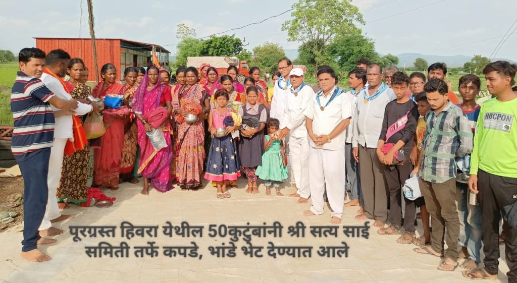 श्री सत्य साईसेवा समिती पुसद व साई समिती महागाव अंतर्गत, पूरग्रस्त खडका ,सवना ,लेवा आणि “हिवरा “या गावातील जवळ पास 400 महीला, पुरुष, तरुण आणि छोट्या मुला आणि मुलींना रोज लागणाऱ्या किराणा वस्तूच्या किटस्, कपडे, भांडे, आणि बिस्किट्स चे वाटप करण्यात आले, श्री सत्य साई बाबांच्या आदर्श शिकवणी वर ही संघटना सेवा कार्य करीत असते, श्री साई बाबा म्हणतात “मानव सेवा हिचं माधव सेवा तसेच प्रार्थनेसाठी जोडलेल्या हाता पेक्षा समाज सेवा करणारे हात अधिक पवित्र असतात”. अश्या दिव्य विचारांनी प्रेरित होऊन कार्य केल्या जाते..