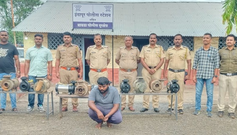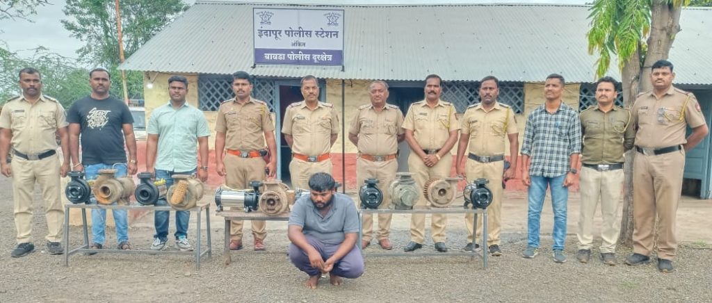त्यानूसार सदर चोरीच्या तपासात पोलीसांना आरोपीबाबत गोपनीय माहिती मिळताच सागर शिवाजी साठे ( वय २१ वर्षे, काटी ता इंदापूर ) याला ताब्यात घेवून चौकशी केली असता गुन्ह्याची कबूली दिली. आरोपीने चोरलेल्या शेतातील ११ विद्यूत पंप पोलीसांनी हस्तगत केलेल्या आहेत. सदर बाबत इंदापूर पोलीस स्टेशन येथे चार गुन्हे दाखल झालेले आहेत.