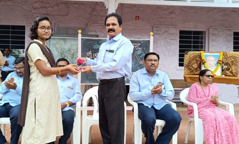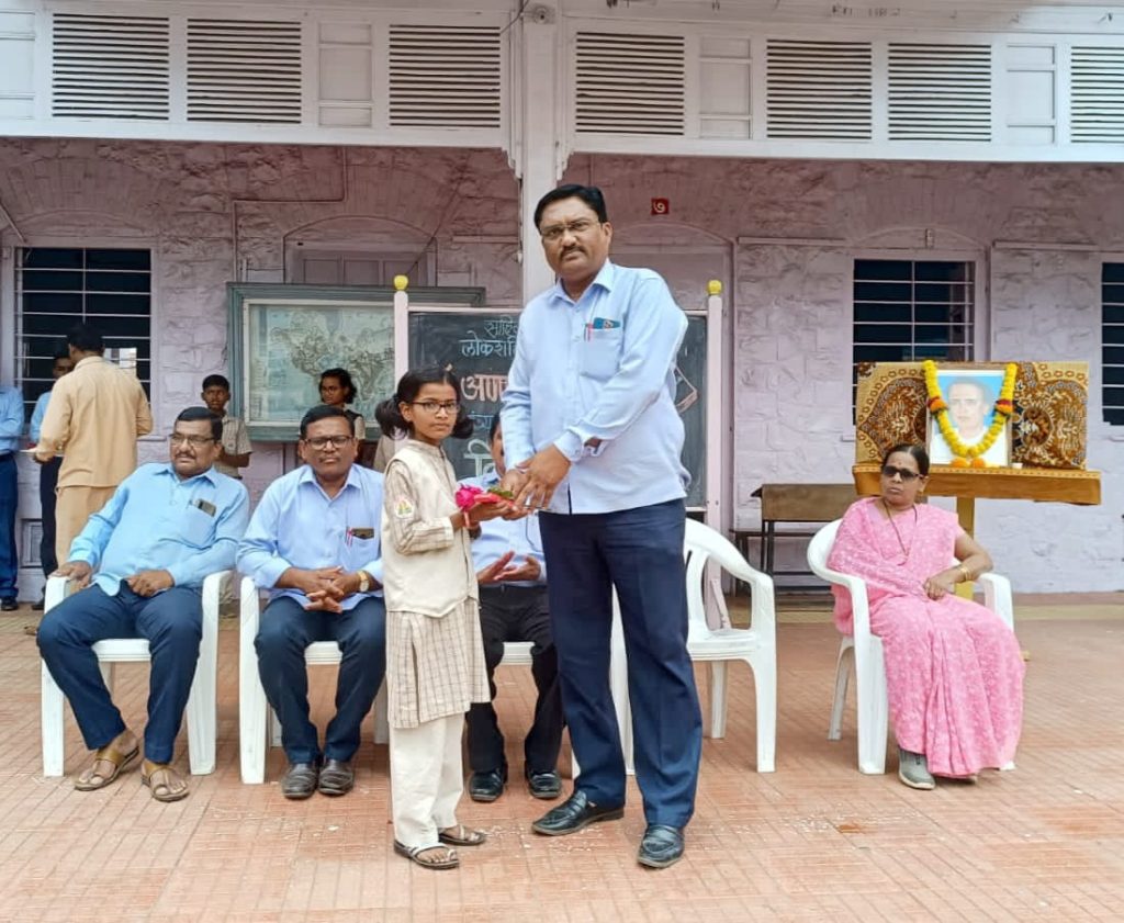 यावेळी सिद्धी हेगडकर,पंकजा धायगुडे, स्नेहा माळी,श्रद्धा बोरावके,सानिका होनमाने, पियुष आरडे या विद्यार्थ्यांची भाषणे झाली. त्यांना मान्यवरांच्या हस्ते गुलाब पुष्प व पेन भेट देऊन त्यांचे कौतुक करण्यात आले. शिक्षक महेश शिंदे व राजू कांबळे यांनी “माझी मैना गावाकडे राहिली,माझ्या जीवाची होते कायली” हे सुंदर गीत सादर केले.कार्यक्रमास शिक्षक-शिक्षिका शिक्षकेतर कर्मचारी विद्यार्थी उपस्थित होते. कार्यक्रमाचे सूत्रसंचालन व भाषण विद्यार्थीनी प्रांजली साळुंखे हिने तर आभार सिद्धी तुपे हिने मानले.