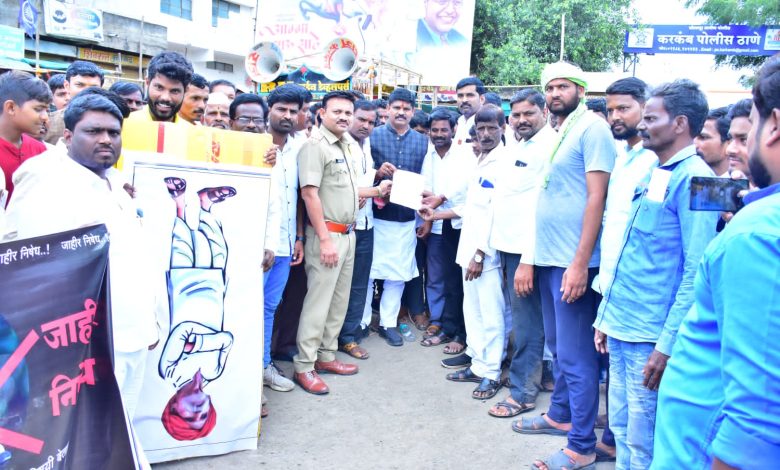 करकंब येथे संभाजी भिडेच्या विरोधात मोर्चा काढून निषेध, विविध संघटनांच्या वतीने देशद्रोहाचा गुन्हा दाखल करण्याची मागणी