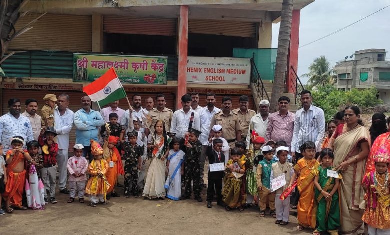 या प्रसंगी फिनिक्स स्कूलच्या संचालिका सौ नुरजहाँ फकृद्दीन शेख म्हणाल्या की,बालकांच्या सर्वांगीण विकासा बरोबर वेगवेगळे उपक्रम राबवत त्यांच्यात देशभक्तीची बीजे बालमनात रुजवली गेली तरच आजचा बालक उद्याचा उत्तम नागरिक होणार आहे.