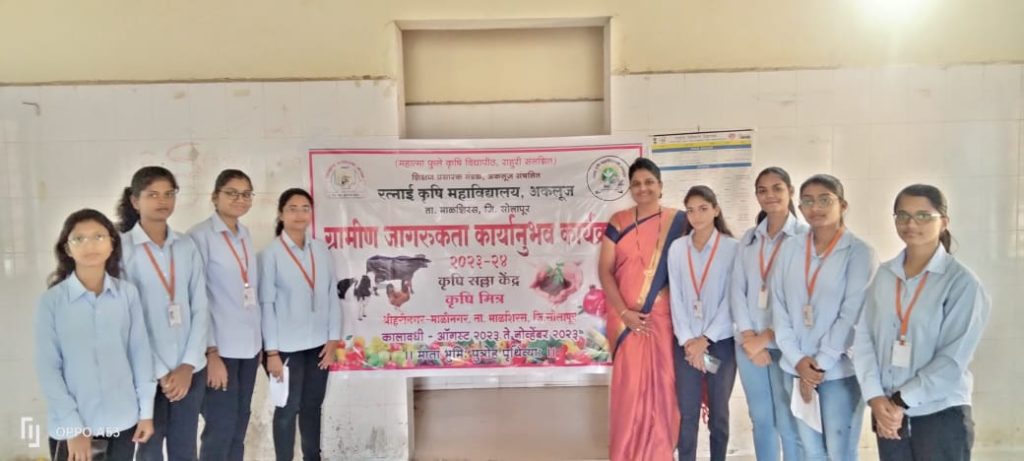 माळीनगर ता. माळशिरस येथे महात्मा फुले कृषी विद्यापीठ राहुरी, अंतर्गत अकलूजच्या रत्नाई कृषी महाविद्यालयाच्या वतीने शेतकऱ्यांसाठी ग्रामीण जागरुकता कार्यक्रमाचे आयोजन करण्यात आले होते.