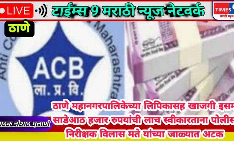 ठाणे महानगरपालिकेच्या लिपिकासह खाजगी इसम साडेआठ हजार रुपयांची लाच स्वीकारताना पोलीस निरीक्षक विलास मते यांच्या जाळ्यात अटक