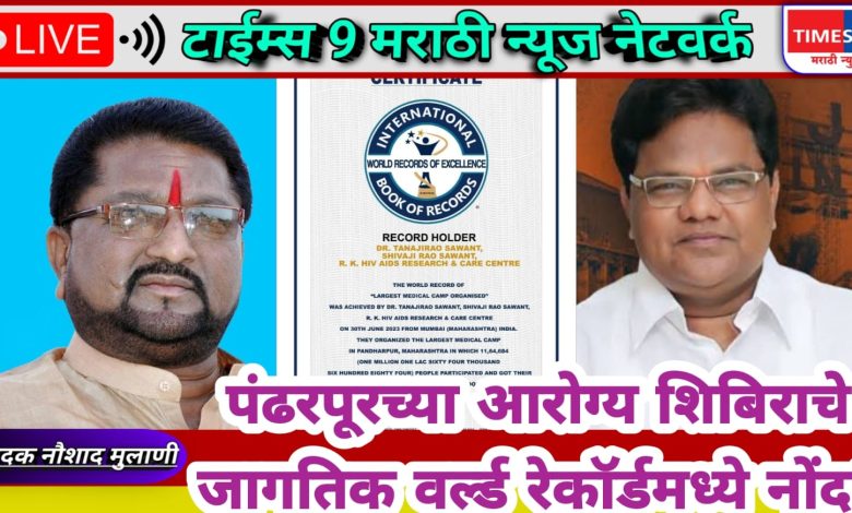 पंढरपूरच्या आरोग्य शिबिराचे जागतिक वर्ल्ड रेकॉर्डमध्ये नोंद!!अकरा लाख 64 हजार रुग्णांची झाली तपासणी!!