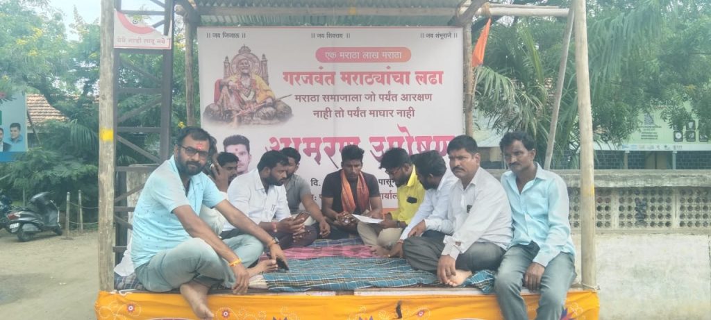 मराठा आंदोलनकर्त्यांवार लाठीचार्ज घटनेच्या निषेधार्थ व मराठा समाजाला आरक्षण मिळावे, अंतरवाली सराटी येथील आंदोलनकर्त्यांवर गुन्हे दाखल केले ते मागे घ्यावेत यासाठी जालना जिल्ह्यानंतर पंढरपूर जि.सोलापूर येथील आंदोलनकर्ते गणेश जाधव यांनी शुक्रवार ०८/०९/२०२३ रोजीपासुन आमरण उपोषणाला बसले आहेत त्यांच्या या निर्णायक लढ्याला बळ मिळो ह्याच मायबाप पांडुरंगाच्या चरणी प्रार्थना केली व स्वाभिमानी शेतकरी संघटनेच्यावतीने जाहीर पाठिंबा देन्यात आला. यावेळी समाजबांधव मोठ्या संख्येने उपस्थित होते.