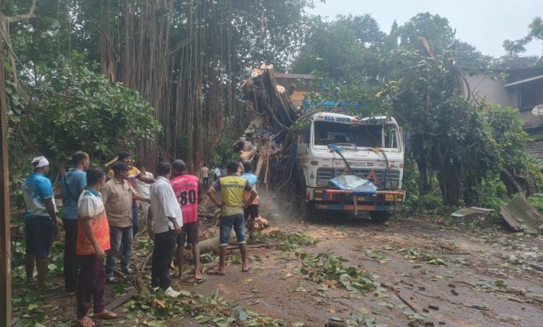 स्थानिकांनी सदरच्या घटनेची माहिती देवूनही सार्वजनिक बांधकाम विभागाचे अधिकारी घटनास्थळी वेळीच धावून न आल्याने स्थानिकांनी मात्र कसलीच पर्वा न करता रस्ता मोकळा करण्यात विशेष मेहनत घेतल्यानेच वाहतूक पूर्ववत झाली. दरम्यान काही महिन्यांपूर्वी याच ठिकाणी ट्रेलरमधून कंटेनर नेत असताना वडाच्या झाडाला अडकून काही काळ वाहतूक ठप्प झाली होती. त्यावेळी देखील स्थानिकांनीच पुढाकार घेऊन रस्ता मोकळा केला होता. याच राज्यमहामार्गावर मोठमोठी वृक्ष रस्त्याच्या दिशेने झुकलेली आहेत. दरवर्षी ही वृक्ष उन्मळून किंवा एखाद्या अपघाताने पडून रस्ता बंद पडतो. मात्र दरवर्षी अशा घटना घडूनही सार्वजनिक बांधकाम विभाग मात्र कोणतीच उपाययोजना करीत नसल्याने या भागातील नागरिकांकडून प्रशासनाविरुद्ध संताप जनक प्रतिक्रिया व्यक्त केल्या जात आहेत