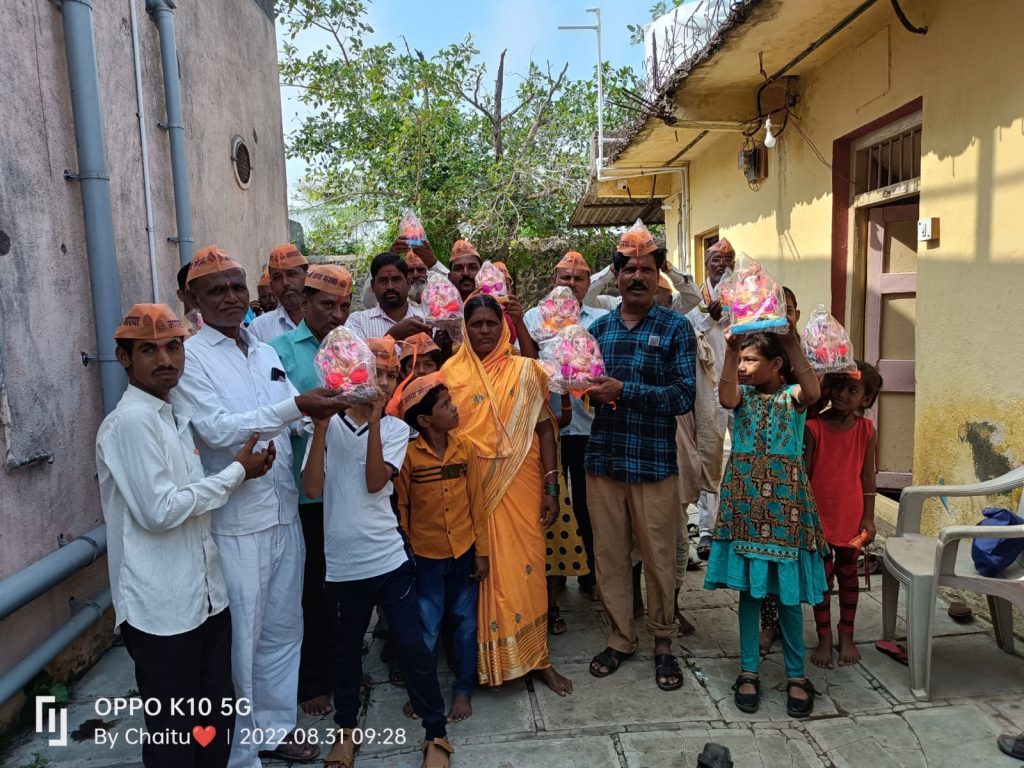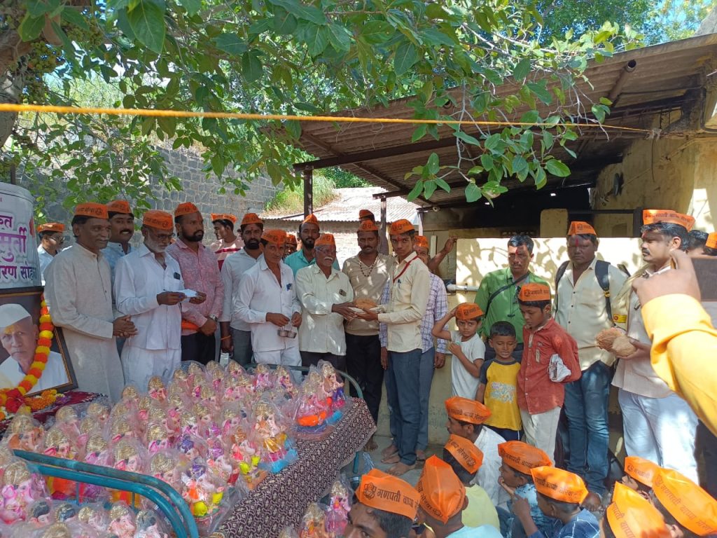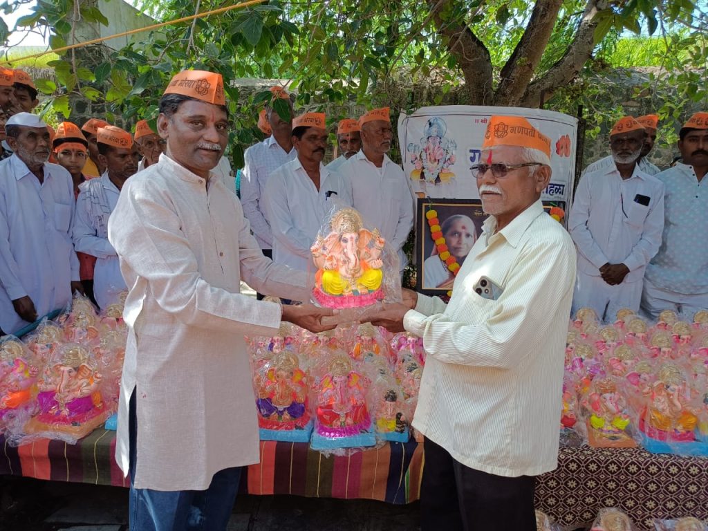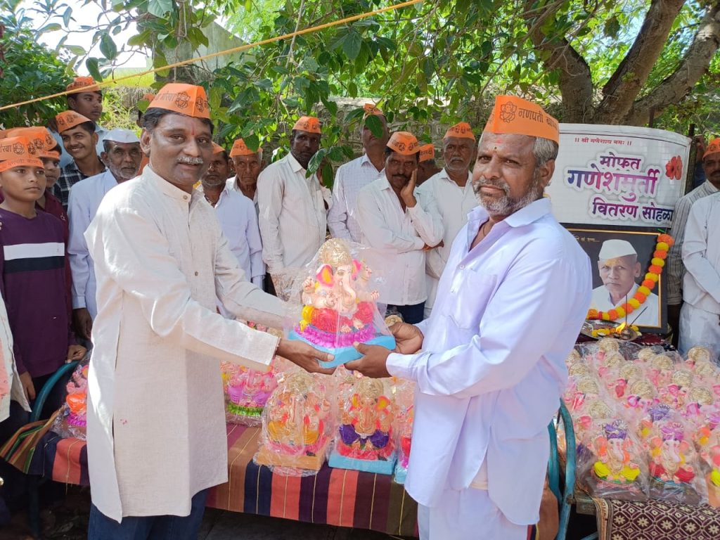 आई-वडीलांच्या स्मृती प्रित्यर्थ पारंपारिक पद्धतीने कोळी परिवारा तर्फे ४०० एकफुटी गणेश मूर्तींचे वाटपाचा उपक्रम राबविण्यात आला यावेळी ते बोलत होते.कार्यक्रमाच्या अध्यक्षस्थानी माजी सरपंच प्रशांत पाटील होते. यावेळी माजी सरपंच भारत मोरे, भारत घाडगे, ह भ प रामभाऊ कुदळे, महादेव पाटील, दिंडी प्रमुख बाळासाहेब कुलकर्णी, देविदास चौधरी, सोमनाथ जाधव, शिवाजी पिसाळ, तात्यासाहेब जाधव, संतोष गोसावी ,हनुमंत शिंदे, चैतन्य विराट, पोपट घाडगे आदी मान्यवर पदाधिकारी यावेळी उपस्थित होते.