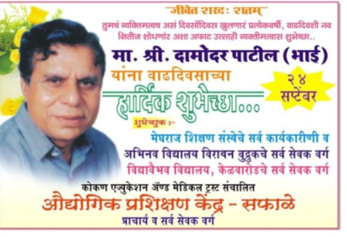 आज या शाळेतून हजारो विद्यार्थी शिक्षण घेऊन डॉक्टर,पत्रकार, वकील, शिक्षक, उद्योजक तसेच अनेक शासकीय विभागांमध्ये कार्यरत आहेत. तसेच त्यांनी केळवा रोड येथे देखील जिल्हा परिषदेच्या इयत्ता पाचवी ते दहावी पर्यंतच्या शाळेची स्थापना केली आहे. या दोन्ही शाळा मेघराज शिक्षण संस्था संस्थापक दामोदर पाटील यांचा देखरेखी खाली चालत असून त्यांनी पालघर तालुक्यातील सफाळे येथे पहिले आयटीआय उभारून या आयटीआय मधून शिक्षण घेणाऱ्या कुशल तरुण कारागिरांना शासकीय विभागामध्ये आणि नामांकित कंपन्यांमध्ये नोकऱ्या मिळवून दिल्या आहेत. तर विरार येथे देखील त्यांनी होमिओपॅथिक आणि मेडिकल कॉलेजची स्थापना केली आहे.