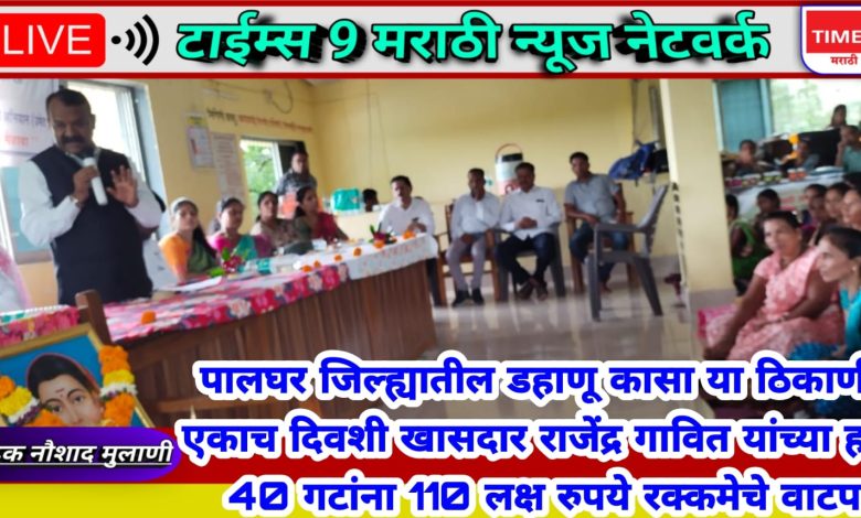 पालघर जिल्ह्यातील डहाणू कासा या ठिकाणी एकाच दिवशी खासदार राजेंद्र गावित यांच्या हस्ते 40 गटांना 110 लक्ष रुपये रक्कमेचे वाटप