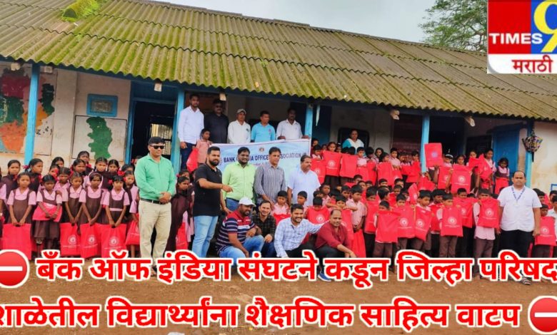 बॅक ऑफ इंडिया संघटने कडुन जिल्हा परिषद शाळेतील विद्यार्थ्यांना शैक्षणिक साहित्य वाटप.