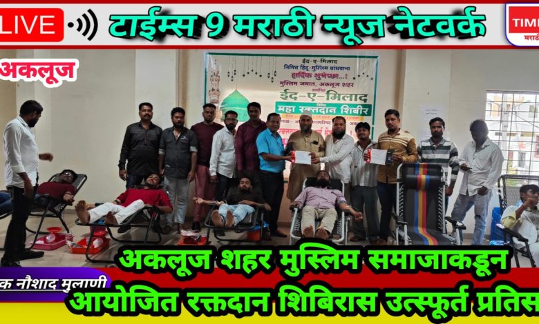अकलूज शहर मुस्लिम समाजाकडून आयोजित रक्तदान शिबिरास उत्स्फूर्त प्रतिसाद.पैगंबर जयंतीनिमित्ताने आयोजित रक्तदान शिबिरात एकुण १५१ रक्तदात्यांचा सहभाग