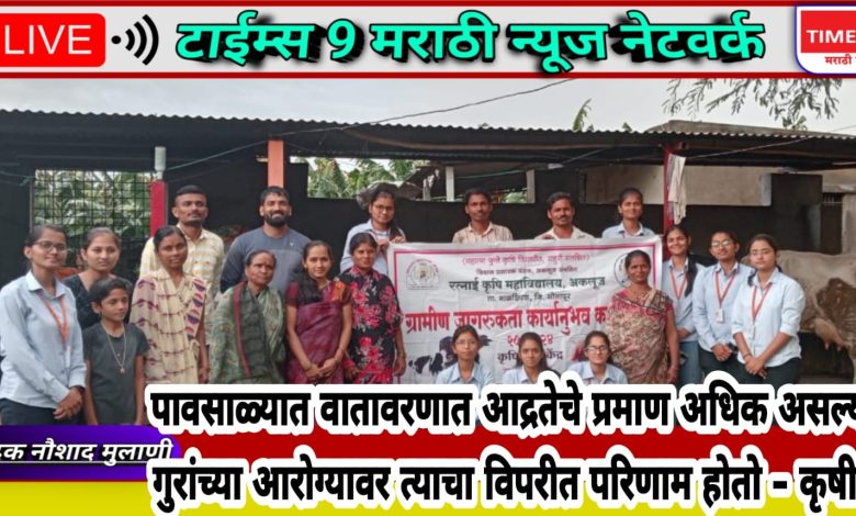 माळीनगर : पावसाळ्यात वातावरणात आद्रतेचे प्रमाण अधिक असले आणि त्यामुळे वेगवेगळ्या बुरशी, जिवाणू, विषाणू यांचा प्रादुर्भाव जास्त प्रमाणात होतो व त्याचा वि वीपरीत परिणाम गुरांच्या आरोग्यावर मोठ्या प्रमाणावर होतो असे मत कृषीदुत भाग्यश्री कदम, आकांक्षा मोरे, लक्ष्मी कोरे, श्वेता भडांगे, रोहिणी गोलेकर, मेघना मोरे, अंकिता भोगावडे, प्रणाली देशमुख, प्रशाली पवार यांनी महात्मा फुले कृषी विद्यापीठ, राहुरी संलग्नित, रत्नाई कृषी महाविद्यालय, अकलूज आयोजित ग्रामीण जागरूकता कार्यानुभव अंतर्गत व्यक्त केले.