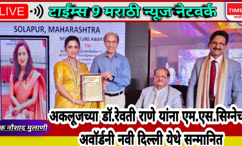 अकलूजच्या डॉ.रेवती राणे यांना एम.एस.सिग्नेचर अवाॅर्डनी नवी दिल्ली येथे सन्मानित.