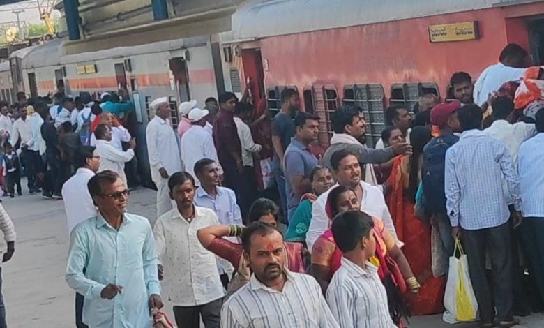 जेऊर रेल्वे स्टेशनवर प्रवाशांची प्रचंड गर्दी हुतात्मा व इंटरसिटी रेल्वे जेऊर येथे थांबवण्याची रेल्वे प्रवासी संघटने कडून होत आहे मागणी