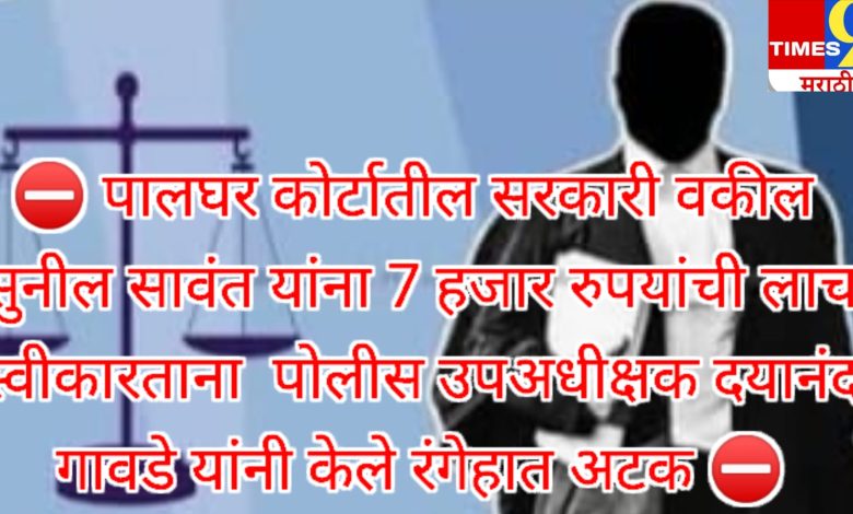 पालघर कोर्टातील सरकारी वकील सुनील सावंत यांना 7 हजार रुपयांची लाच स्वीकारताना पोलीस उपअधीक्षक दयानंद गावडे यांनी केले रंगेहात अटक