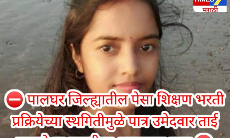 पालघर जिल्ह्यातील पेसा शिक्षक भरती प्रक्रिया थांबवण्यात आल्यामुळे एका उमेदवार तरुणीचा नैराश्यामुळे मृत्यू झाल्याची घटना पालघर जिल्ह्यातील जव्हार तालुक्यात घडली आहे.