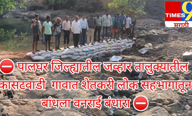 पालघर जिल्ह्यातील जव्हार तालुक्यातील कासटवाडी ग्रामपंचायत लोकनियुक्त सरपंच कल्पेश विनायक राऊत यांच्या प्रयत्नातून शुक्रवार दिनांक 3 नोव्हेंबर 2023 रोजी मौजे कासटवाडी ह्या गावात पाणी आडवा पाणी जिरवा या संकल्पनेतून शेतकरी लोक सहभागातून वनराई बंधारा बांधण्यात आला आहे.