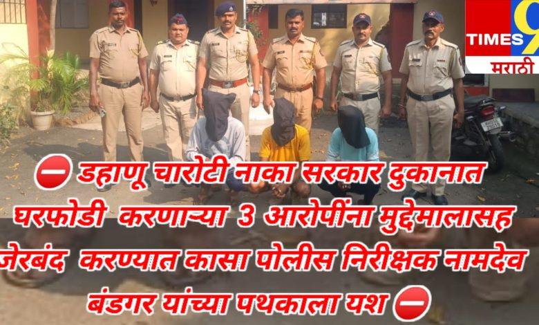 डहाणू चारोटी नाका सरकार दुकानात घरफोडी करणाऱ्या 3 आरोपींना मुद्देमालासह जेरबंद करण्यात कासा पोलीस निरीक्षक नामदेव बंडगर यांच्या पथकाला यश