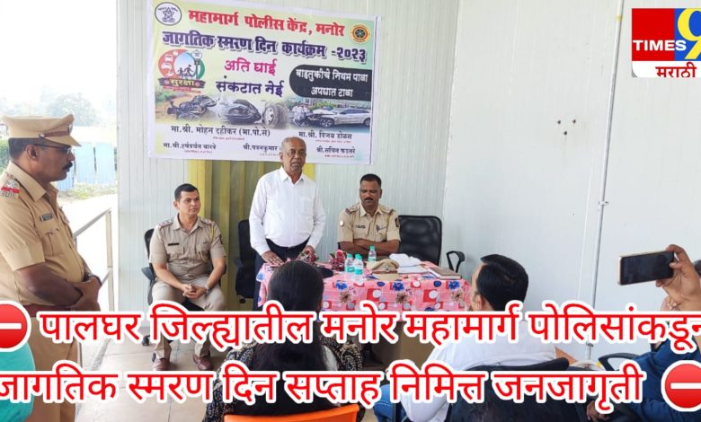 पालघर जिल्ह्यातील मनोर महामार्ग पोलिसांकडून “जागतिक स्मरण दिन” सप्ताह निमित्त जनजागृती