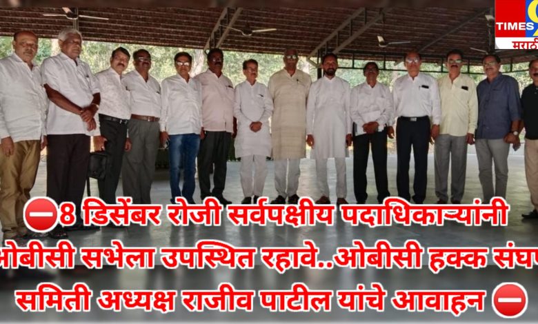 8 डिसेंबर रोजी सर्वपक्षीय पदाधिकाऱ्यांनी ओबीसी सभेला उपस्थित रहावे…ओबीसी हक्क संघर्ष समिती अध्यक्ष राजीव पाटील यांचे आवाहन
