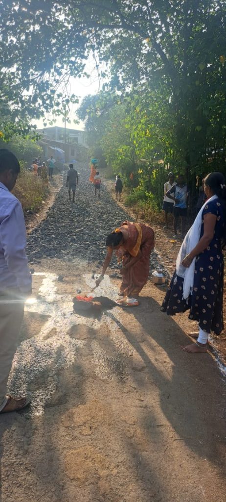 या नवीन रस्त्याचे भूमिपूजन शनिवार दिनांक 2 डिसेंबर 2023 रोजी विराथन बुद्रुक ग्रामपंचायत विद्यमान सरपंच सौ.अंजली किणी यांच्या हस्ते करण्यात आले
