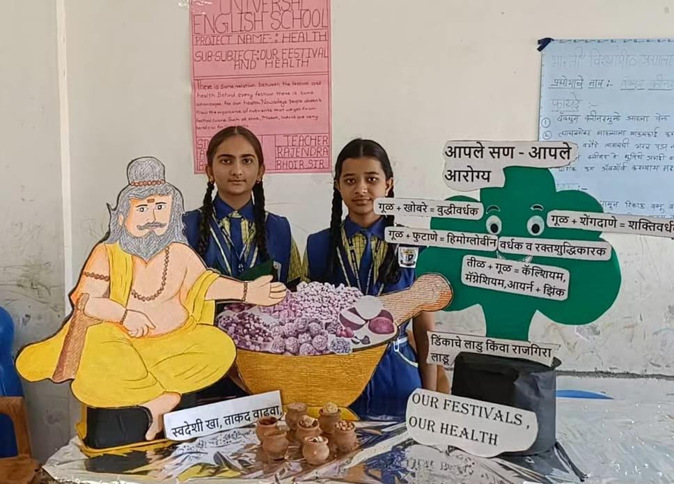 त्यात युनिव्हर्सल शाळेच्या विद्यार्थ्यांनी कुमारी अल्विया मुल्ला व कुमारी भावना पाटील यांनी तयार केलेल्या *आपले सण आपले आरोग्य* या विज्ञान प्रकल्पाने प्रथम क्रमांक पटकावला.त्यांनी केलेल्या मेहनतीमुळे व आलेल्या प्रथम क्रमांकामुळे या विद्यार्थिनींना आनंद अश्रू त्यांच्या डोळ्यात दिसले. त्यांच्या पुढील जिल्हास्तरीय स्पर्धेसाठी शाळेचे अध्यक्ष मा. इर्शाद मुल्ला, सचिव मा. हर्षद मेघपुरिया, सर्व संचालक मंडळ, मुख्याध्यापिका पायल मेघपुरिया व मार्गदर्शक राजेंद्र भोईर व इतर शिक्षक वृंद यांनी शुभेच्छा दिल्या.