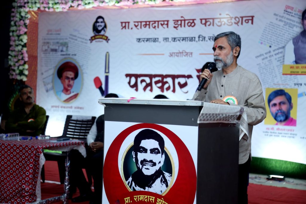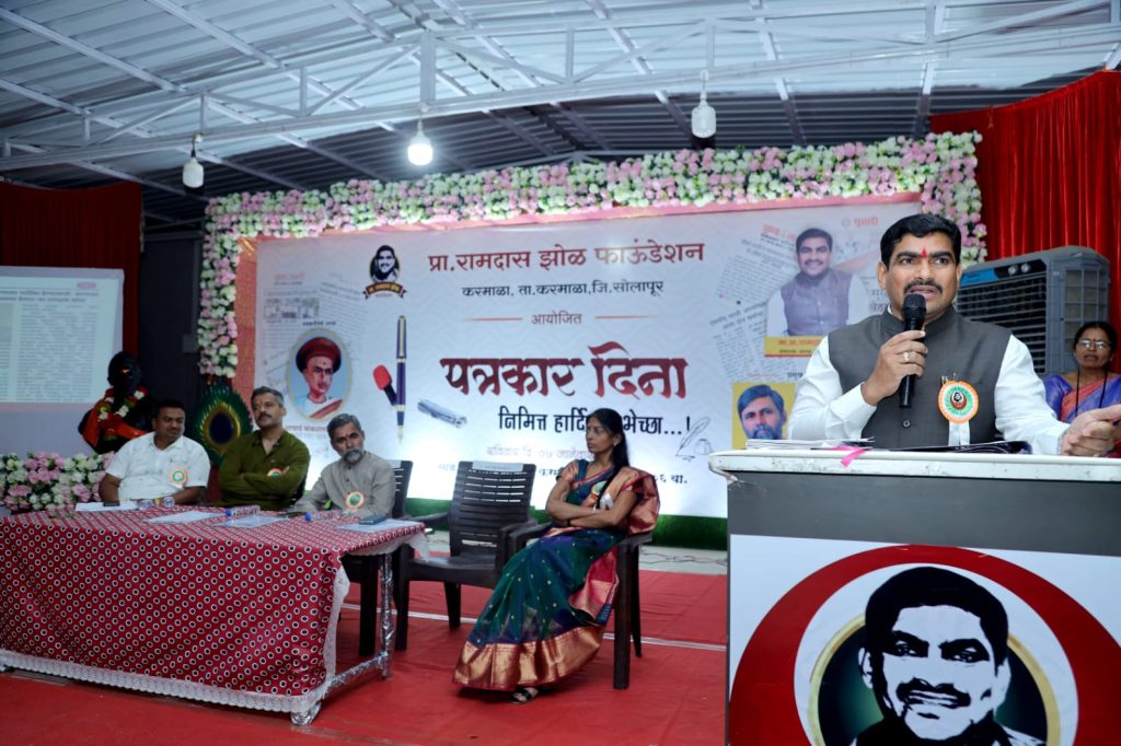 जगाला विकासाला दिशा देणारा रोबोट पेक्षाही वेगवान असणारा मानवी मेंदू हा पत्रकाराचा असून पत्रकारांनी वर्तमान परिस्थितीनुसार भविष्याचा वेध घेत समस्याचा उकल करत विकासात्मक पत्रकारिता केली तर या समाजाचे कल्याण होईल. यासाठी पत्रकाराची जबाबदारी मौलाची आहे. प्रा. रामदास झोळ सर यांनी आयोजित केलेला पत्रकार कुटुंब सन्मान सोहळा हा उपक्रम स्तुत्य कौतुकास्पद असल्याचे त्यांनी सांगितले. भविष्यात करमाळा तालुक्याच्या विकासाबाबत प्रा.रामदास झोळ सरांची भुमिका महत्त्वपुर्ण असुन करमाळा तालुक्याचे यशस्वीपणे नेतृत्व करण्याची क्षमता त्यांच्याकडे असल्याने करमाळा तालुक्याचे भवितव्य उज्वल असल्याचे सांगितले.