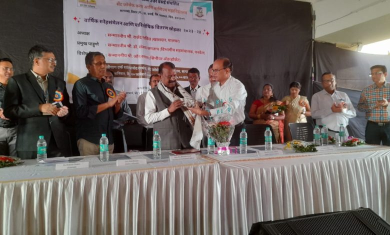 पालघर जिल्ह्यातील सेंट जोसेफ कला व वाणिज्य महाविद्यालय सत्पाळा विरार महाविद्यालयांचा वार्षिक स्नेहसंमेलन 2023-2024 व पारितोषिक वितरण सोहळा तसेच संगणक कक्ष उद्घाटन कार्यक्रम पालघर लोकसभा खासदार राजेंद्र गावीत यांच्या अध्यक्षतेखाली व प्रमुख पाहुणे संजय जगताप विभागीय महासंचालक पनवेल, विषेश सन्मानिय जाॅन रूमाव ( सिनियर अॕड. ) यांच्या उपस्थितीत शनिवार दिनांक 20 जानेवारी 2024 रोजी पार पडला.